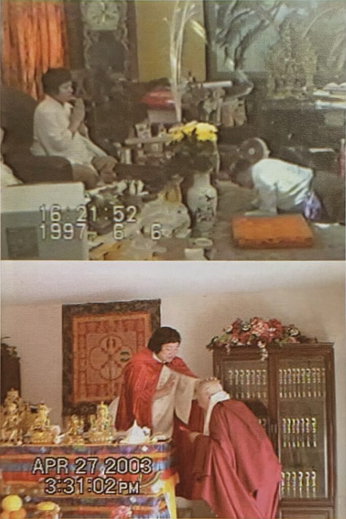 我今天無論說出什麼樣的話,也代表不了我內心的喜悅殊勝,我最偉大的如佛恩師,仰諤大法王聖駕霧中山,當時我和我的師弟果章法師正在與四眾弟子打禪七的第三天,突然護法叫我說:「最偉大的巨聖德駕臨了,祂穿的是白衣服,趕快取消禪七,率領大眾大禮接駕吧!」這時果章師弟對我說,他接到護法的報告,有最大的聖德駕臨;我們當場宣布四眾弟子取消禪七,立刻擺駕擂鼓鳴鐘接駕,果然十分鐘後山下來了一隊幾十人,原來是我的恩師仰諤總持大法王駕到,當我攙扶恩師登上明月池的途中,師父反攙著我的手說:「我年輕,你不要攙扶我,應該我攙著你這位老人。」當時我深感慚愧,弟子怎能有資格讓大法王恩師攙扶呢?現在聽完《藉心經說真諦》以後,恩師說的才是一語道斷的真理哦!我們這些行人,就是要依靠恩師不鬆手地把我們攙扶著到究竟涅槃的佛土,我們哪裡有資格攙扶恩師啊!當我反覆聽到《藉心經說真諦》的開示說法般若心髓,我只能說講透了六百卷般若的心要和行修戒體二資糧,恩師的說法深者見深,淺者見淺,微妙至極,平中見奇,實在說來,是開天闢地第一義諦之無上說法。聽了恩師講說的法音無上大法以後,讓我頓然大徹大悟,桶底脫落,可惜我歲數太大,失掉化虹飛升的條件,但慶幸的是,我證到了肉身不壞的境界,今後圓寂後,可以為世人證明我大法王如佛恩師,才是十方諸佛的總匯法王。回想起當初錯誤的認識,深感羞慚,誤認為只有西藏密宗才有即身成佛的大法,現在我得到了,才真正瞭解如來的正法不是哪一宗有、哪一宗沒有,其實佛法是獨立在世外的妙寶,與密宗、顯宗沒有任何關係,任何一宗都有佛法,也沒有佛法,關鍵在於真正的佛法不是宗在掌管,而是佛菩薩在掌法,佛菩薩化身在哪一宗為師,哪一宗就有大法。想到當初我在峨嵋金頂的修持,只能無言以對,而今天處於法樂中的我,只能祈請諸佛加持,如來大事因緣早日成熟,眾生早日得聞恩師講說出諸佛之母法《藉心經說真諦》,福慧速猛圓滿,今生必證菩提聖道,生死自由!