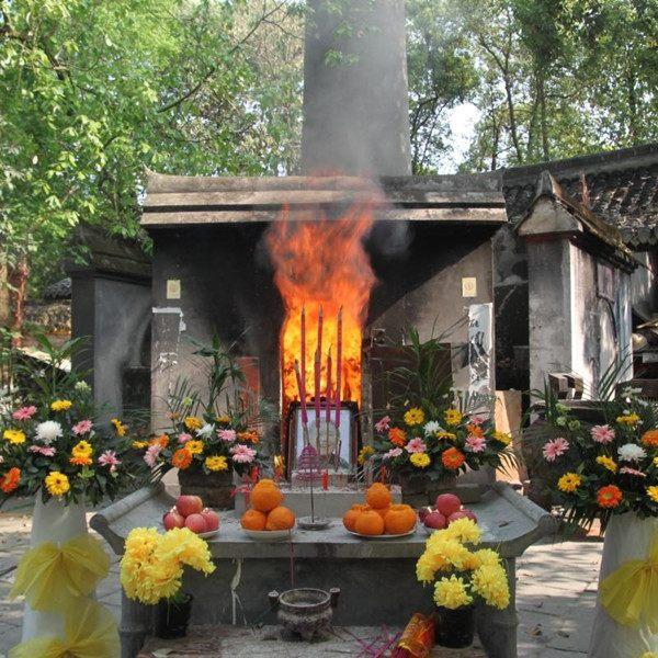 下午四時,在場子侄後輩按照輩分,分排立於龕前,由寶光寺的眾僧人師傅舉行荼毗火化法會。在誦經聲中點火焚燒,暫態火光沖天。很快,木龕表層燒化脫落。在熊熊火光中,可以看見外婆的骨相端坐於火光中,巍然不動。戒和師說,再過5分鐘,就該倒下來了。可接下來的30多分鐘,在火光中不僅頭骨,胸骨完好沒有倒下。當時還出現神奇一幕:幾個不同的子侄親人,都發現無論站在焚化爐的左邊,正前方,還是右邊,無論我們怎麼變換方向,外婆的頭骨都正對著我們,彷彿隨我們走動轉頭一般,可謂神奇。直至30多分鐘後,大部分人去餐廳吃飯,骨相才溜下來,被柴火掩埋住。一直到晚上燒了幾個小時,最後火才熄滅。