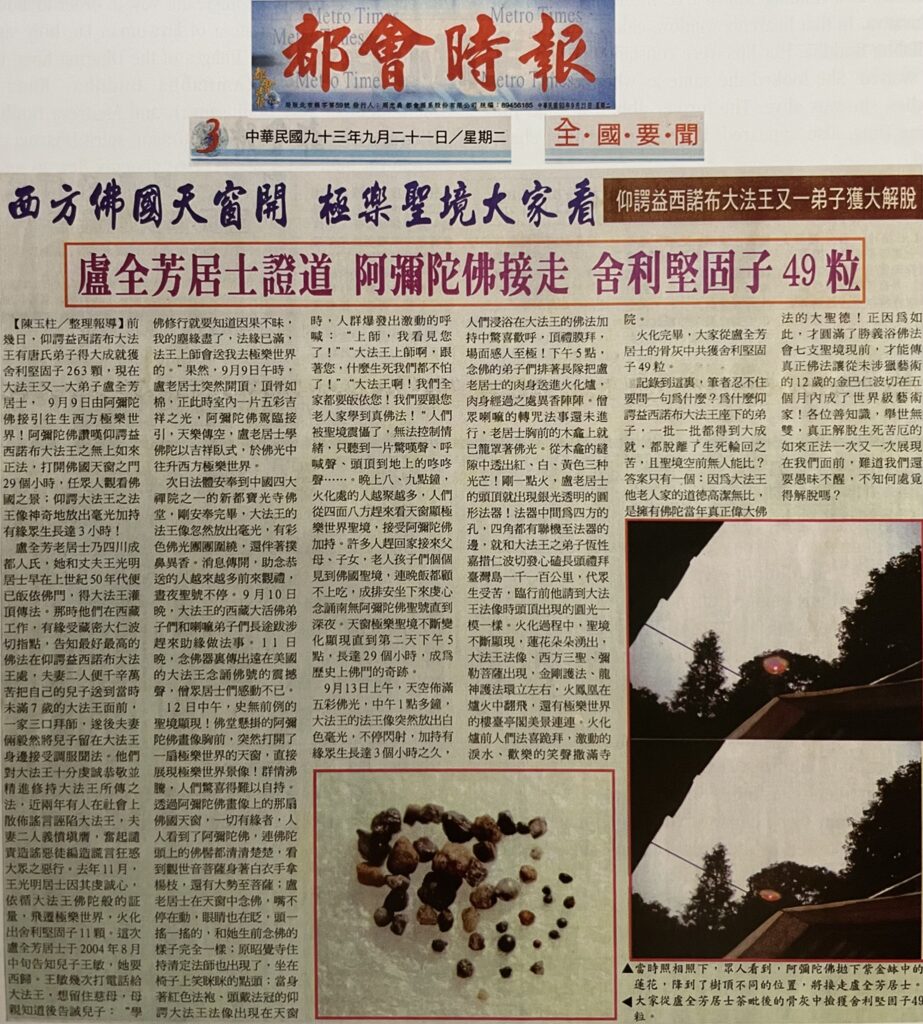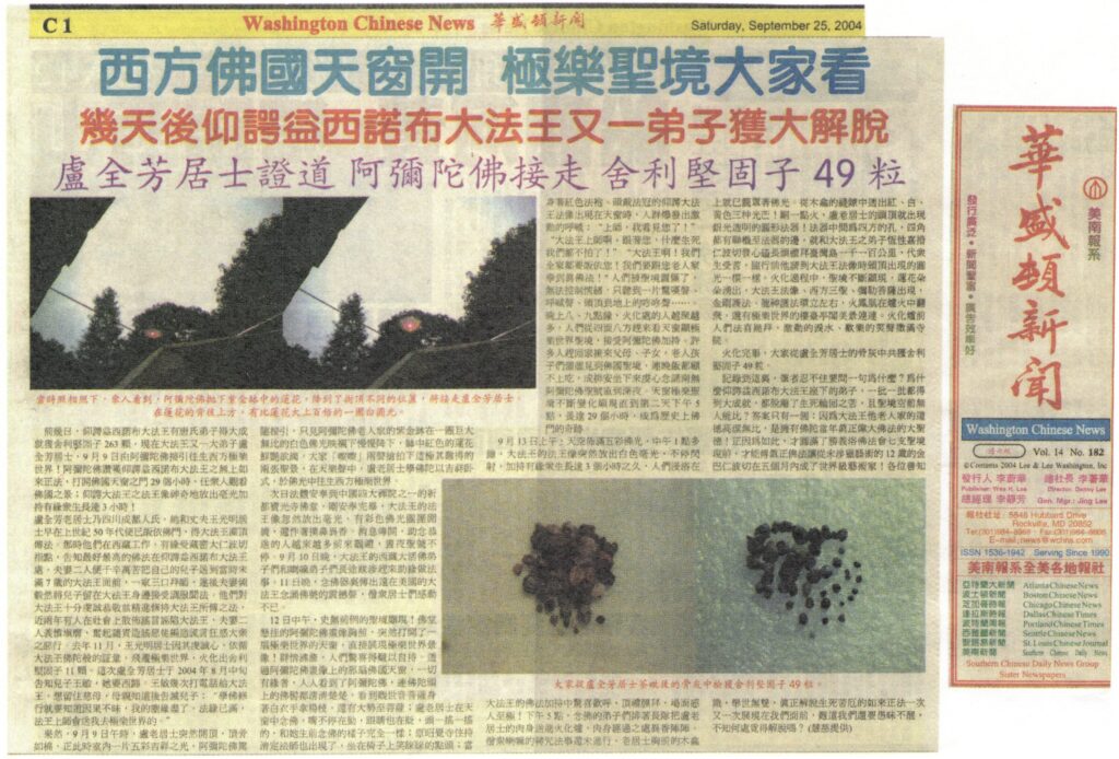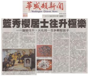 【華盛頓新聞】盧全芳居士證道 阿彌陀佛接走 舍利堅固子49粒