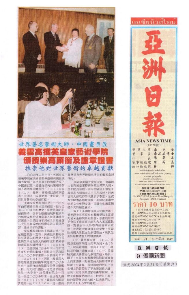 義雲高大師(南無第三世多杰羌佛)獲授英國皇家藝術學院Fellow職稱