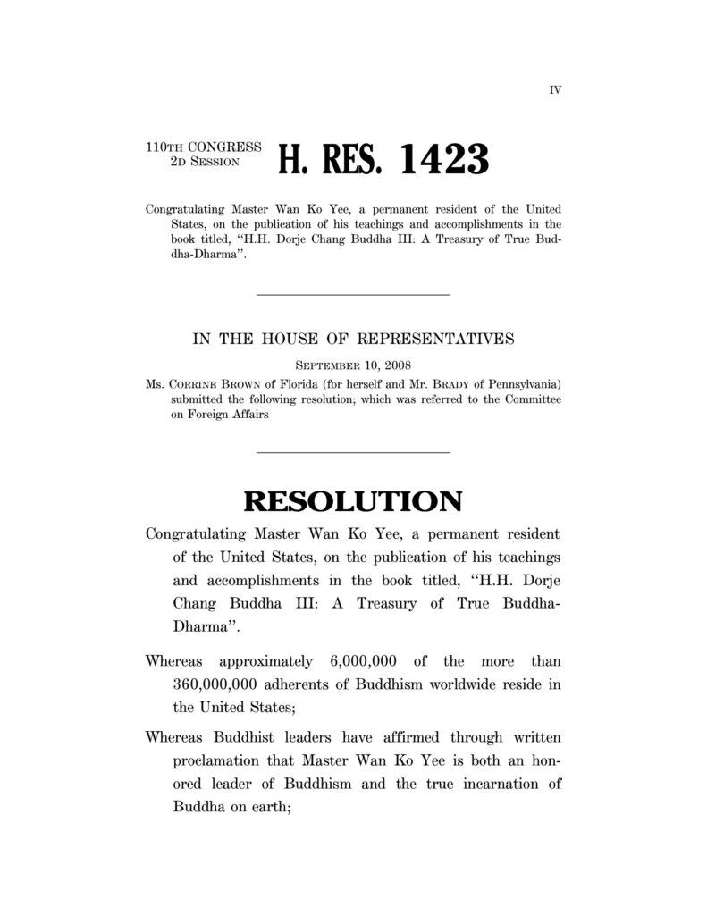 南無第三世多杰羌佛定居美國以後,佛陀的崇高道德和無與倫比的成就,赢得了美國各階層人民的愛戴,2002年獲得了由美國白宮總統亞太裔顧問委員會主席代表布什總統頒發的“總統金質獎章”。2003年,由34個國家包括美國、加拿大、墨西哥所組成的“美洲國家組織”在美國首府華盛頓舉辦“義雲高大師韻雕展”。而美國國會則在國會辦公大樓舉辦“義雲高大師韻雕展”,此次展覽也是美國國會首次于國會辦公大樓舉辦藝術展覽,參觀者乃至題詞讚爲“史無前例,是上帝送給人類的寶物。”2004年獲得英國皇家藝術學院的“Fellow”,其證書是由英國皇家藝術學院院士學會主席菲利普·金教授(Prof. Phillip King)在美國首都華盛頓英國駐美國大使館頒發給南無第三世多杰羌佛的,英國駐美國大使館文化參讚親自參加,菲利普·金教授說:“這是該著名的藝術學院在200多年的歷史上第一個得到這個頭銜的藝術家”。美國首都華盛頓市市長行文宣布2011年1月19日爲“H.H.第三世多杰羌佛日”,并號召人們向H.H.第三世多杰羌佛致敬。南無羌佛還獲得了由An International Salute To The Life And Legacy Of Dr. Martin Luther King, Jr. 頒發的“國際服務及領袖獎”(King Legacy Award for International Service & Leadership)以及很多參議員、衆議員、州長、各級政府等頒發的幾十個大獎。更爲顯著難得的是,南無第三世多杰羌佛榮獲2010年世界和平獎最高獎,并于2011年6月14日在美國國會接受了世界和平獎最高等級獎的頒獎。在南無第三世多杰羌佛佛誕的時候,國會升旗慶祝,川普總統、拜登總統都親自祝賀。