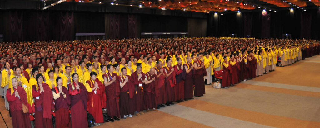南無第三世多杰羌佛自降世娑婆以來,以始祖報身佛的佛境覺量,在世界上創立了無數第一的紀錄,無一不是爲利衆生。少年時即舍身救人而獲“少年英雄”稱號,随年歲漸長,佛陀以本具醫方明爲衆生義務治病,每日多達五百人,而分文不取,病愈者贈送的匾額錦旗堆滿了屋子。而後,随着佛陀利益衆生事業的擴大,中國新聞紀錄電影制片廠專門爲南無羌佛拍攝了新聞紀錄片《潛心奮鬥的人》,在全國放映。1987年,年輕的南無羌佛就深孚衆望,擔任了中國社會福利教科文中心國畫研究會會長,名譽會長有廖井丹、李文清、呂骥、袁曉園、吳丈蜀、錢君匋、謝稚柳等,羅章龍、臧克家等爲顧問。1992年南無羌佛獲得“東方藝術大師”稱號,1994年在匈牙利召開的第四屆世界詩人文化大會上,5612位專家學者一致投票,授予南無羌佛“特級國際大師(元首級榮位)”,證書由國際奧委會主席薩馬蘭奇簽署。同年,《義雲高大師館》在佛陀的家鄉四川省大邑縣正式開館,這是中國乃至世界上第一個由政府爲一個在世的人修建的紀念館!1995年南無第三世多杰羌佛從中國大陸第一次訪問台灣時,台灣人民自發地給予南無羌佛震撼式的歡迎:兩萬多人在機場迎接,由摩托車領隊的1700多輛車的車隊從機場護送到旅館,這也成爲人類歷史上最大的一次歡迎盛會。南無羌佛在台灣只有短短的三個星期,以台灣國安會秘書長蔣緯國將軍爲首的許多高級官員拜南無羌佛爲師,表态要學好南無羌佛的崇高倫理、人文道德和思想行爲。