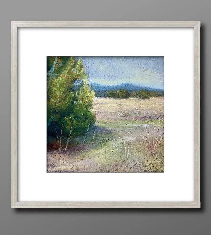 左邊的那棵樹進入了我的視線。我注意到樹枝上受到光照而發亮的樹葉,它們給這片平靜的風景帶來了樂趣。