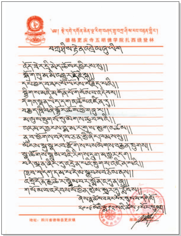 在2000年的一場上萬僧眾參加的法會上,薩迦法王親手將高級佛學院的畢業証書及象徵學位的通人冠賜給了堪布楚稱曲培。2003年,薩迦法王正式授予其堪布名位及証書,囑命其返回藏地宏乘薩迦正法脈流。