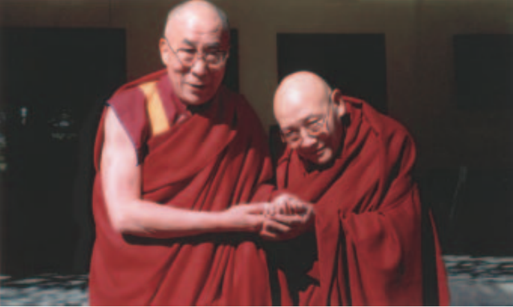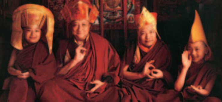 中坐者為頂果欽哲法王和楚西仁波且,左邊為嘉楚仁波且,右邊為冉江仁波且。