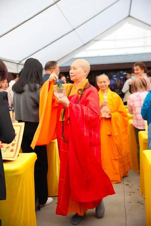 法會最後,由金釦聖德證達教尊與若慧孺尊為大眾施灑加持法水。阿彌陀佛佛誕法會圓滿落幕,但法會帶給與會信眾的祝福與善念的啟發奠定在每個人的心中