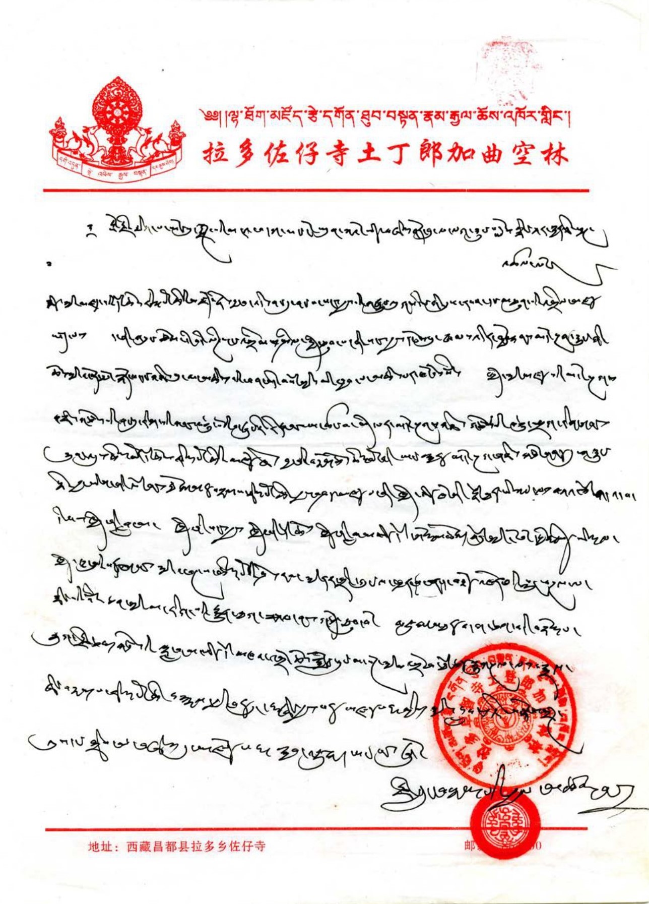 After H.E. the current 6th Karmapa Green Jewel Crown Dharma King Jiezhong was born, the 16th Karmapa, H.H. Great Jewel Dharma King Rangjiong Rigpe Dorje, specially sent a recognition
