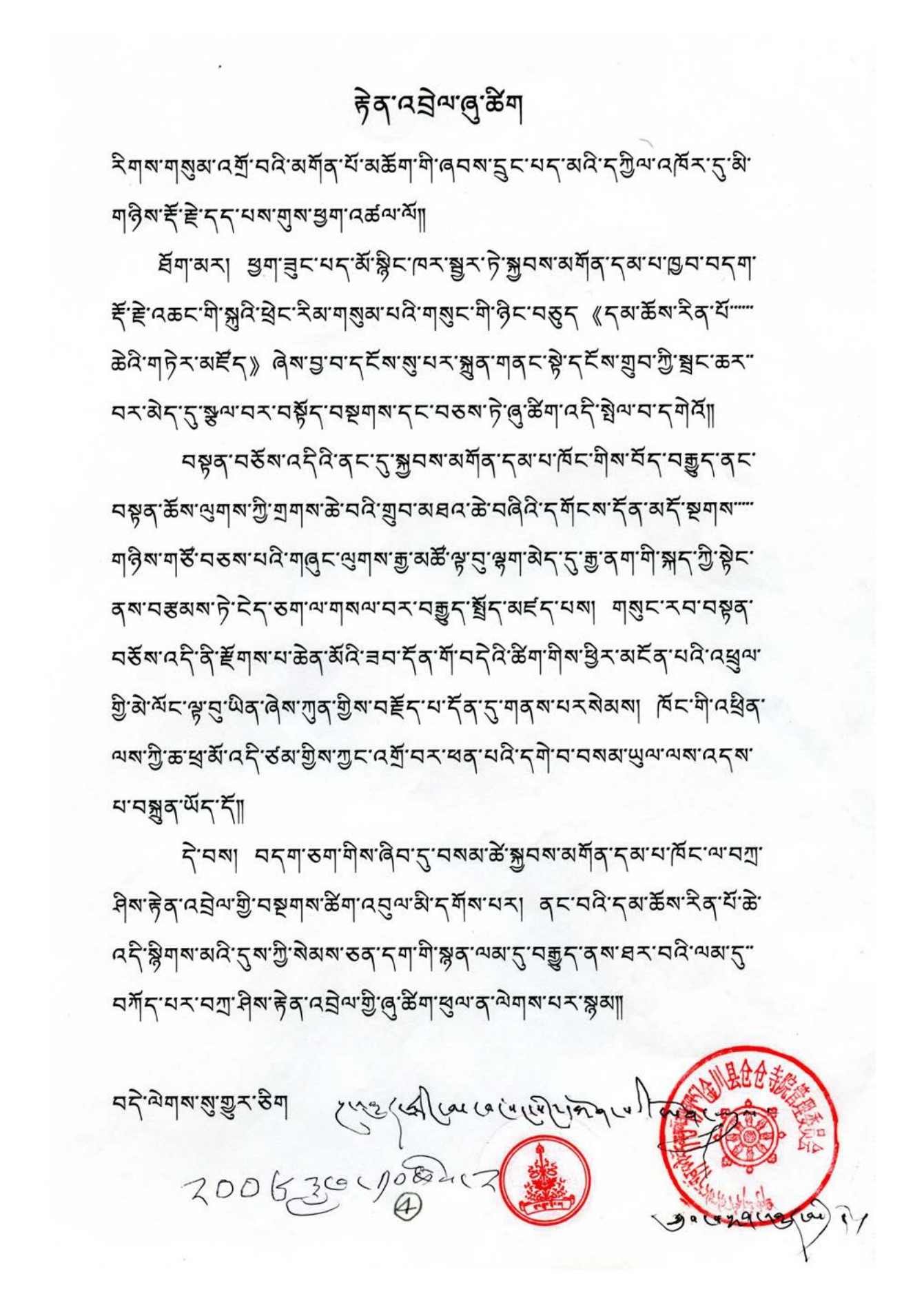 Respected Wangzhi Tudeng Jigmei Rinpoche is the abbot of Tsangtsang Temple. The Tsangtsang Temple of the Nyingma sect is located in the Aba Tibetan Autonomous Prefecture. That temple is a place where numerous persons of great virtue and accomplishment attained the rainbow body. Because it carries on a special dharma lineage of the Buddha, both the Kathok Monastery and the Shechen Monastery have designated the Cangcang Temple as their branch temple.