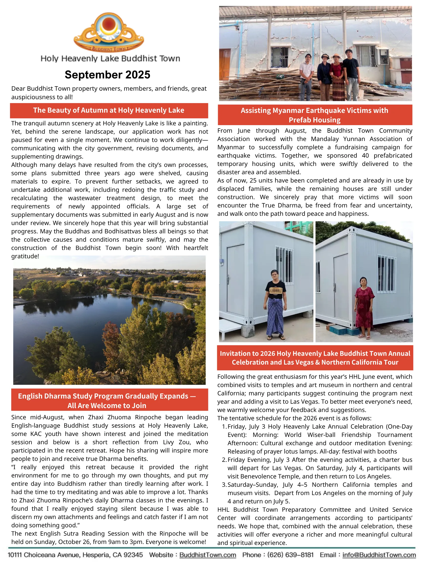 Dear Buddhist Town property owners, members, and friends, great auspiciousness to all!
