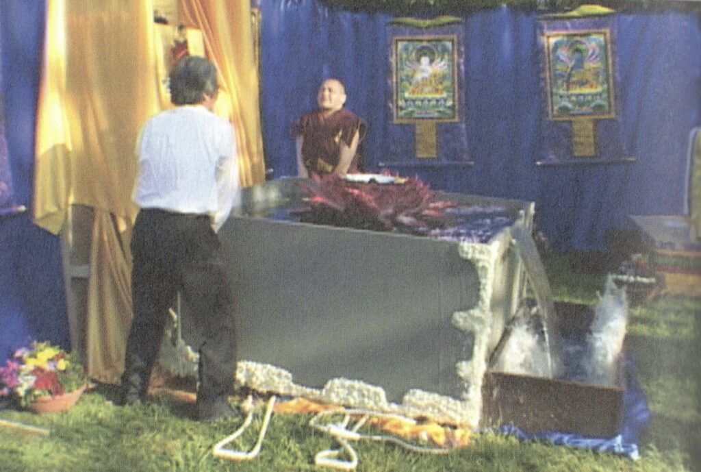 I again broached the subject of making a tour of the USA to introduce the Buddha to the American people, only this time it would be with the big blue treasure book H.H. Dorje Chang Buddha III (FIGURE 21)…