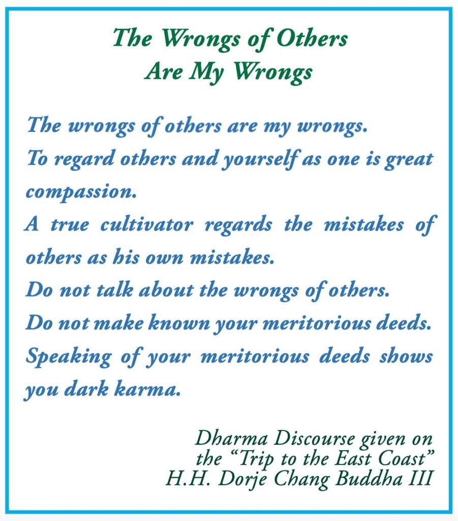 In Learning from Buddha, the Buddha Master told us that we should reflect on what we had learned from the Buddha when we first woke up every morning, mid-day, and before we went to bed to see just how well our three karmas of thinking, speaking, and acting had corresponded with those of the Buddhas and Bodhisattvas…