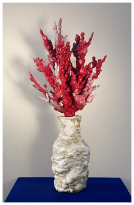 Professor Wang’s hand-sculpted faux coral on which she painted oil colors are even more genuine-looking and more beautiful in form and color than real coral found at the bottom of the sea or on islands. Touching these works of art is like touching real coral that has been immersed and eroded in water. One cannot help but admire Dr. Wang for creating coral with a texture of having been immersed and eroded in water for thousands of years. This texture is difficult to find even with real coral at the bottom of the sea. The forms and colors of her faux coral reveal a quality of elegance and good taste. Such works of art are many times more beautiful than natural coral and have become rare artistic treasures. It is no wonder that her art is regarded as “treasures of the world.”