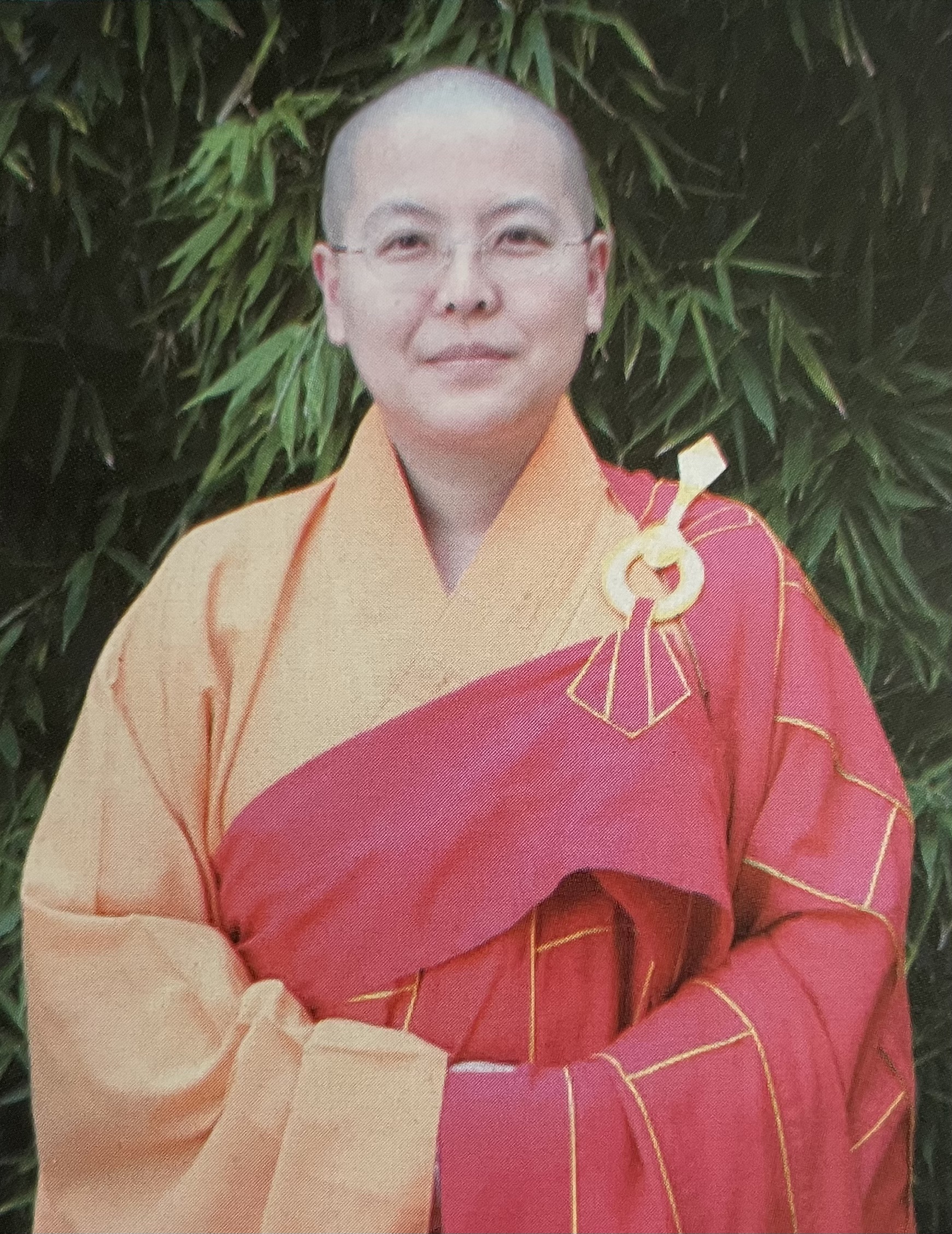 Dharma Teacher Miao Kong is the first person to hold the position of teacher of dharma rituals and precepts at Hua Zang Si in San Francisco. She has deep roots of goodness, strictly abides by the precepts, and strictly carries out dharma rituals. Her understanding and views are pure and upright. She left the household life to become a Buddhist nun twice. She very much regretted having become a disciple under the wrong master at first. With tears trickling down her cheeks, she removed her Buddhist robes and returned to the secular life. However, she continued to strictly abide by the precepts and prayed day and night that she would encounter a holy monastic to be her master. The universe finally responded to her prayers, for she indeed encountered an eminent monastic. When that monastic tonsured her, the awesome power of the Buddhas manifested before her. She finally encountered the right karmic conditions. She continued to lead the pure life of a Buddhist nun, devoutly cultivated herself, and deeply penetrated the dharma. When H.H. Dorje Chang Buddha III performed an initiation for her to eliminate her karmic hindrances, she spit out luminous green water, which increased her realization and merit. Her practice improved by leaps and bounds in the span of that one day. She had an immediate awakening to the dharma, and in a short period of time attained the realization of a dharma teacher.