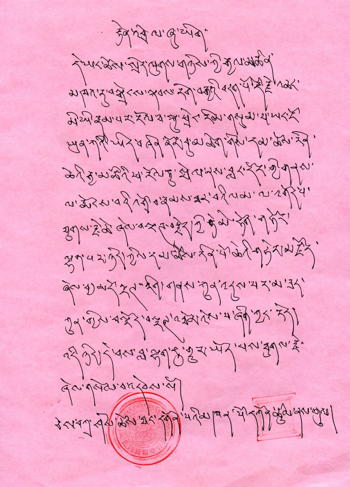 Thus, on behalf of all living beings, I wish that His Holiness, an ancient Buddha, forever live in this earthly realm and turn the wheel of the dharma everywhere!