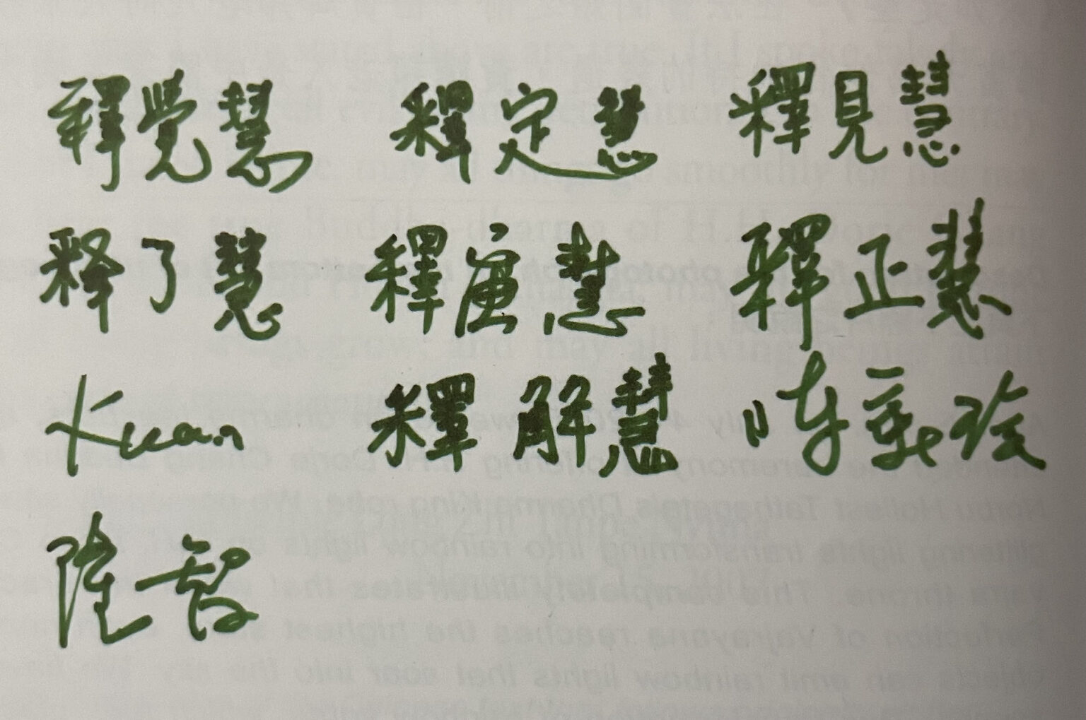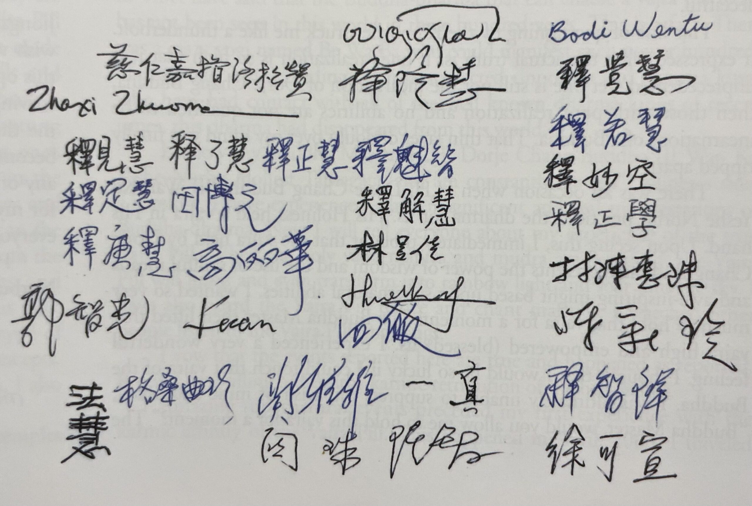 Witnessed by: Jue Hui Shih, Ding Hui Shih, Jien Hui Shih, Liao Hui Shih, Guang Hui Shih, Cheng Hui Shih, Kuan, Jie Hui Shih, Mei-Ling Chen, Long Zhi