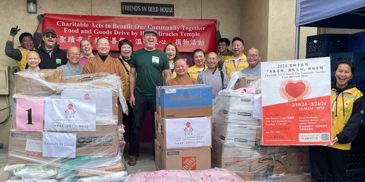 The culmination of the “Charitable Act to Benefit Our Community Together” saw the collection of over 55,000 items, including food, blankets, rice, canned goods, living appliances, and shelter supplies. On March 1st, these donations were distributed to three organizations in nearby communities, including the Heart of Compassion Distribution Food Bank in Montebello, Friends in Deed in Pasadena, and the Pasadena Humane Society. The temple also emphasized that compassion and benevolence are to be carried out for those in need at any time rather than limiting efforts to only holidays or specific events.
