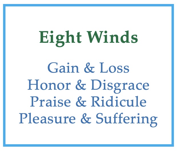 However, it is lesson eight in that series, “Cutting Off the Twenty Dharmas Relating to Ordinary Feelings” that I include on any “must read or hear” list as well as in our daily chants. These are key in our quest to become a holy person. The Buddha Master said, “If we are to reach the holy state, we must thoroughly discard the delusion-based deeds of ordinary people that hinder us and bind us to samsara and must thoroughly discard those things that cause us to be unable to end cause and effect.” They are Fame, Gain, Prosperity, Decline, Good Fortune, Gladness, Increase, Decrease, Antipathy, Resentment, Anger, Hatred, Scheming, Defamation, Seizing, Harming, Illness, Suffering, Parting, and Death. They are a more detailed rendering of the Eight Winds or worldly dharmas that Shakyamuni Buddha said must be abandoned in order to lose attachment to self and become a holy being. You may have encountered them in other Buddhist literature. In this discourse the Buddha Master gives a brief description of each of these twenty dharmas of ordinary feelings and explains how they cause us to be unable to end cause and effect and thus remain in samsara. The Buddha Master tells us that if we can cut off these twenty dharmas relating to ordinary feelings, we will no longer be entangled by attachment to self, which is the root of samsara.