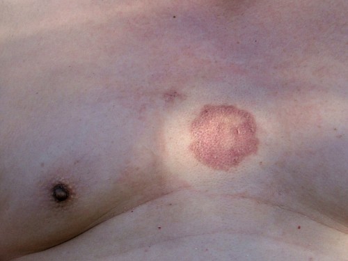 Out of the mark on the body of that overweight Rinpoche, a mandala object has already grown. A ring of light as bright as the light of a flashlight emanates from his skin around that mark. Great Dharma King Yisinubu said, “Next, it will further extend outward, will be translucent and lustrous, and will be like the skin of a baby.”