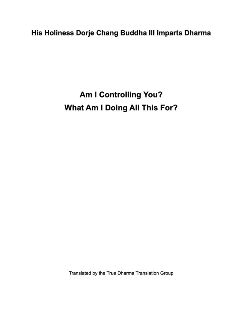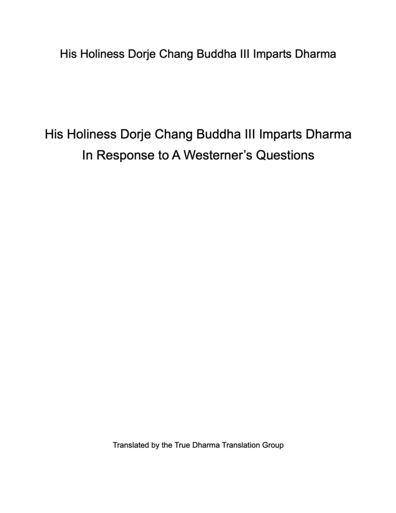 His Holiness Dorje Chang Buddha III Imparts Dharma in Response to a Westerner’s Questions Download PDF