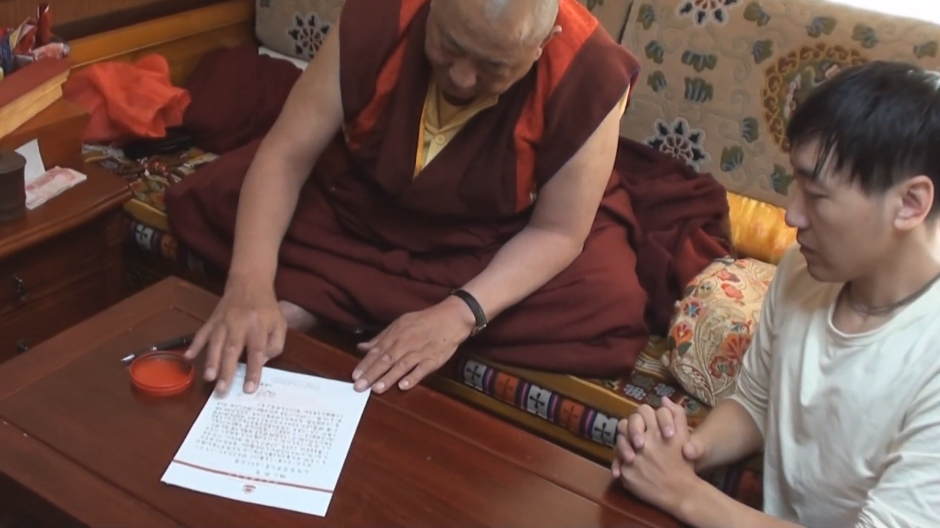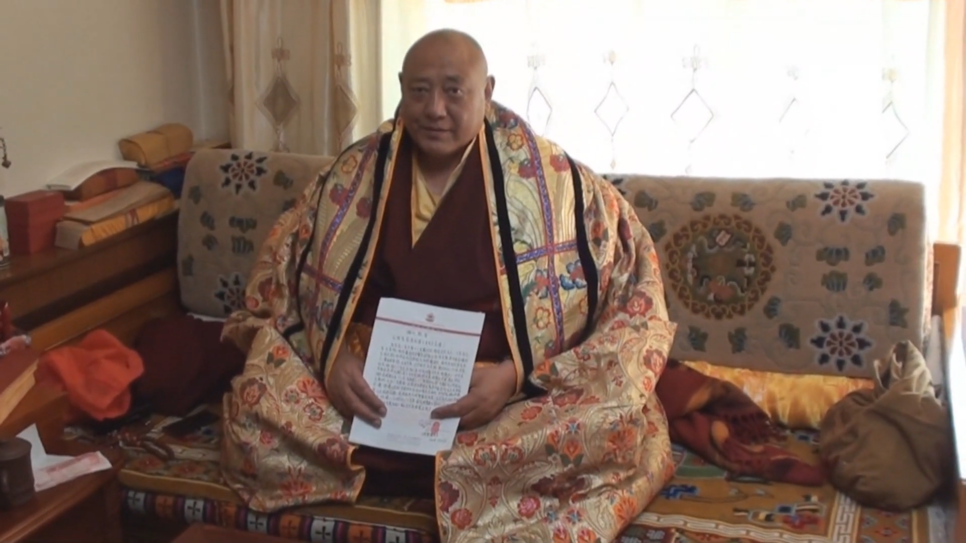 In this lifetime, I formally put the Great Jewel Dharma King robes on to the 17th Karmapa, H.H. Urgyen Trinley Dorje, and performed the yidam dharma initiation for him, which included transmitting dharma to him. A few days before I did that, I saw in a supernatural state the Buddha Vajradhara appear over the head of the Karmapa. The Buddha Vajradhara was radiating light that empowered the Karmapa. Very soon after that, the Buddha Vajradhara metamorphosed into one who was sitting down. He was wearing a yellow robe. His long hair was at shoulder level, and He looked dignified and imposing. Behind Him were high stones, a pool, rooms, red flowers, and green pines. Below Him was a wooden deck. At that time, I knew Dorje Chang Buddha had come to this world, but I did not see His exact whereabouts. During all these many years, I have constantly kept that scene in mind and have reviewed it.