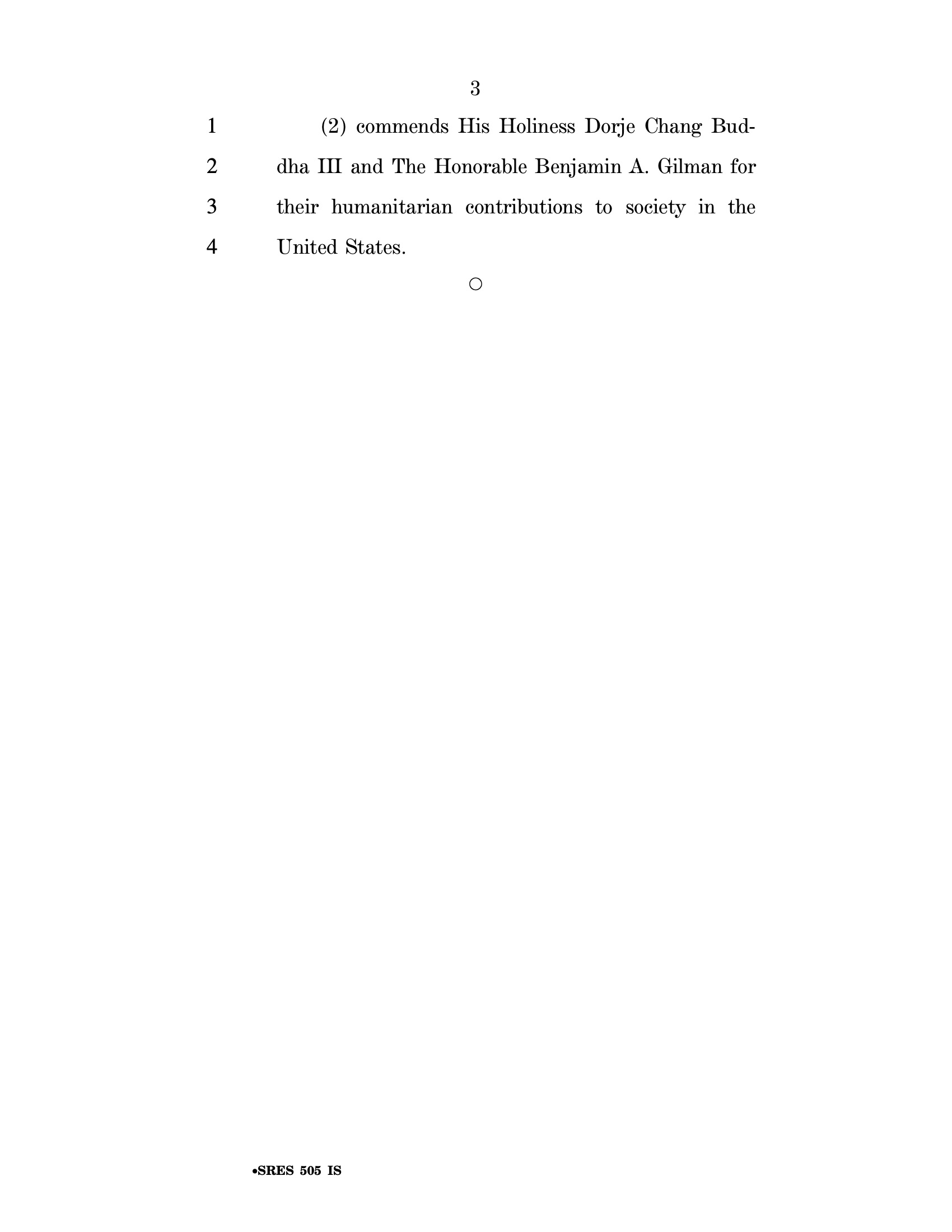 (2) 褒揚H.H.第三世多杰羌佛聖座陛下和班傑明‧亞瑟‧吉爾曼閣下二位對美國社會之人道主義貢獻。
