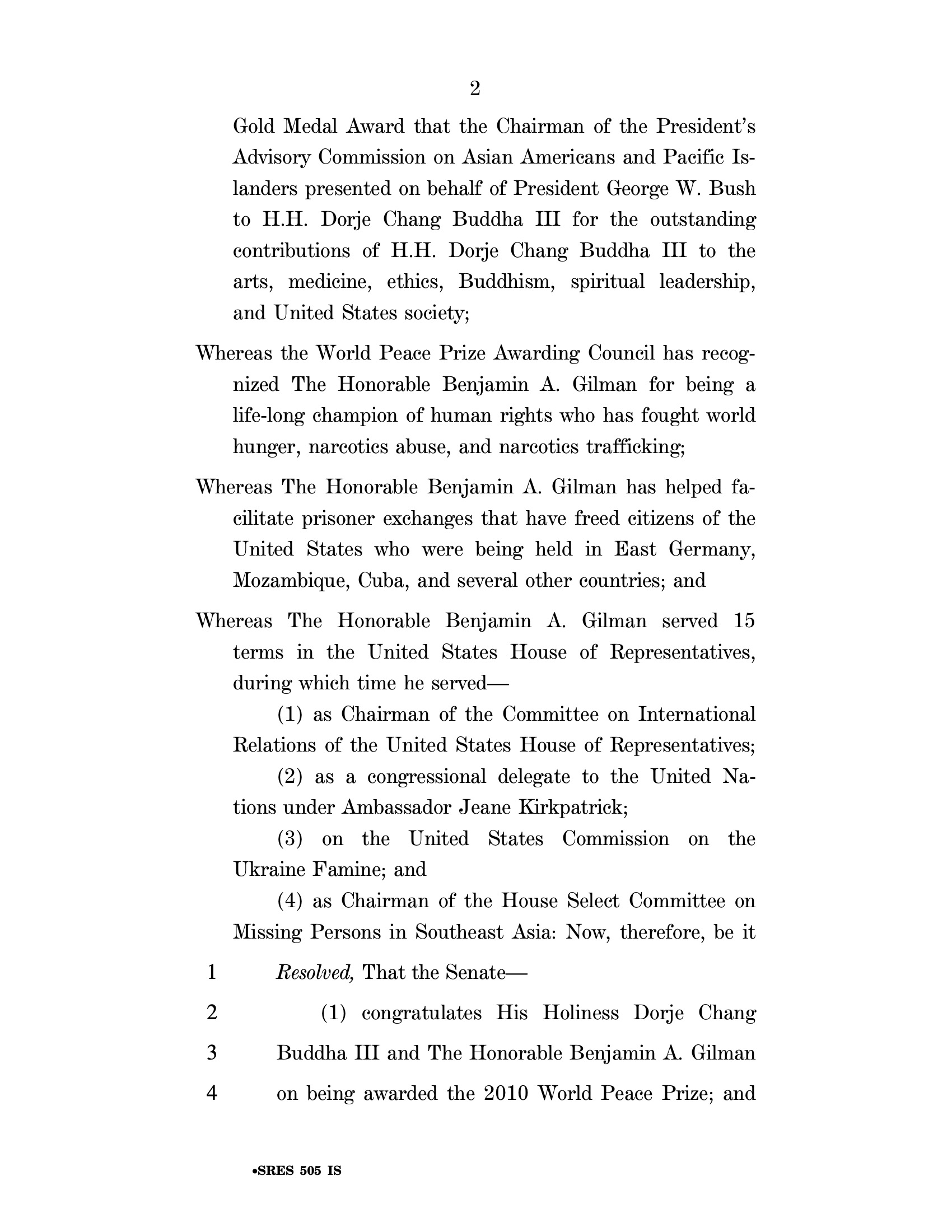 (1) 祝賀第三世多杰羌佛聖座陛下和前眾議員班傑明‧亞瑟‧吉爾曼(Benjamin A. Gilman)閣下獲頒2010年世界和平獎。以及